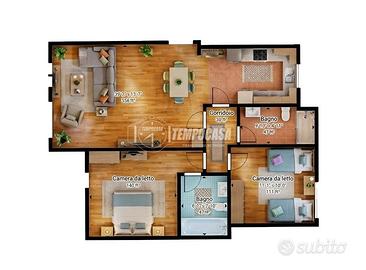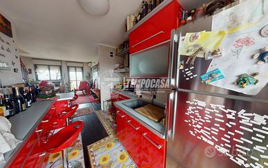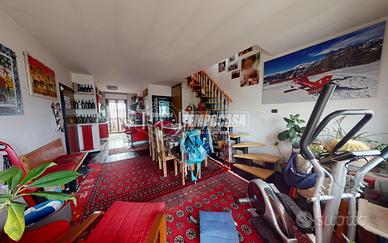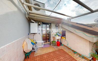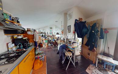 L'immobile è così composto: al primo piano ingresso su ampia e luminosa zona giorno, cucina abitabile (o open space, a seconda della configurazione), primo bagno, camera ampia, camera matrimoniale con bagno in suite e doppio balcone. Al piano superiore mansardato si trova cucina a vista, spazio attualmente adibito a camera matrimoniale, soggiornino, terzo bagno e terrazzo.