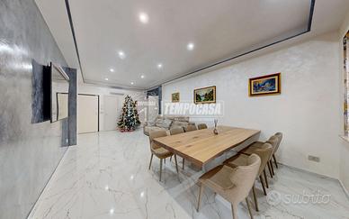 L'immobile è stato completamente ristrutturato con materiali di alta qualità: pavimentazione in piastrelle lucide effetto marmo, infissi con triplo vetro antiriflesso e anti sfondamento, per un ottimo isolamento termico e acustico, impianto elettrico suddiviso in tutte le camere con prese e interruttori Biticino living now, così come il riscaldamento a pavimento, suddiviso con termostati di regolazione con comando WI-FI e domotica, per un elevato comfort abitativo.