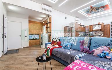 L'appartamento è dotato di riscaldamento a pavimento, stufa e condizionatori sia nel soggiorno che nelle camere da letto, per garantire il massimo comfort durante tutto l'anno. Completa l'immobile un comodo box al piano terra, utile per parcheggiare l'auto o per ulteriore spazio di deposito.
