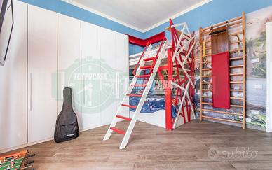 La zona notte è composta da due camere da letto, tra cui una spaziosa e luminosa matrimoniale con bagno privato, garantendo la massima privacy e comodità. Ad accompagnare la seconda camera, un ulteriore bagno ben progettato, funzionale e comodo, per soddisfare le esigenze quotidiane della famiglia.