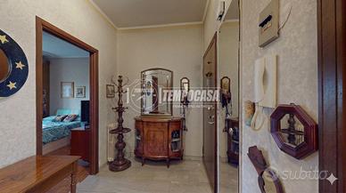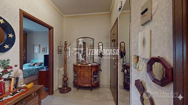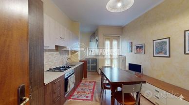 L'appartamento si distingue per l'ampia metratura e per la distribuzione funzionale degli ambienti. L'ingresso accompagna verso la zona giorno, dove troviamo un tinello con cucina a vista, accogliente e conviviale, con affaccio sul primo balcone che comunica direttamente con il soggiorno. Quest'ultimo, generoso nelle dimensioni e particolarmente luminoso grazie al piano alto.