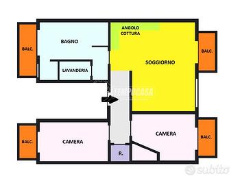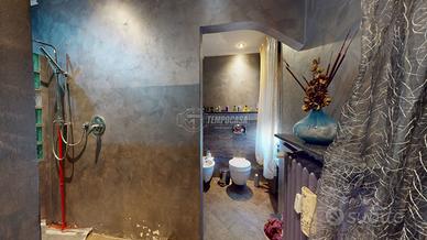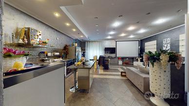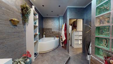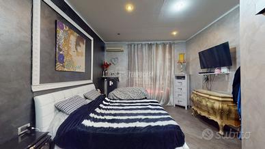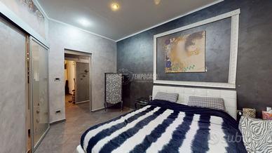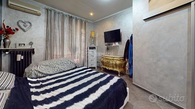 Ingresso su Corridoio che percorre l'intero appartamento, Ampio Soggiorno Abitabile con Angolo Cottura e accesso al Balcone, Camera da Letto Matrimoniale dotata anch'essa di Balcone e una Comoda Cabina Armadio, Seconda Camera luminosa grazie al Balcone, Sala da Bagno di ottima metratura con Vasca da Bagno, Box Doccia e possibilità di accedere ad un Balcone, Lavanderia. Spicca l'arredamento del controsoffitto con incasso per faretti. L'appartamento risulta completamente ristrutturato.