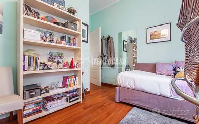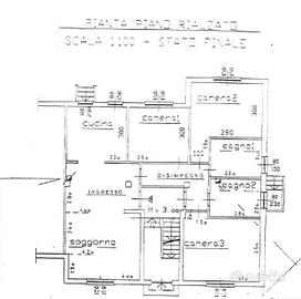 L'appartamento è composto da: ingresso, ampio soggiorno, cucina abitabile con accesso al cortile privato, camera matrimoniale, due camerette e doppi servizi entrambi finestrati.