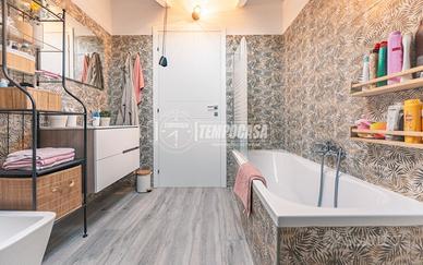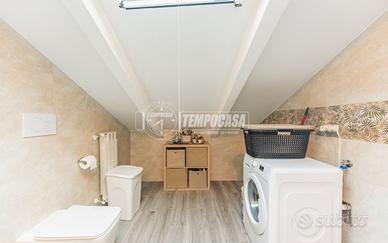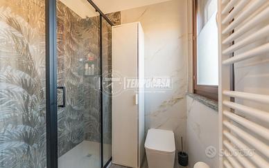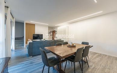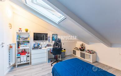 INTERNO: L'immobile si trova al primo piano dell'edificio e si sviluppa su due livelli. L'ingresso da sull'ampio e luminosissimo soggiorno con accesso a cucina abitabile, ripostiglio e all'ampio terrazzo, proseguendo troviamo il disimpegno che ci conduce nella zona notte dove troviamo la camera matrimoniale e il primo bagno, finestrato e con box doccia. Dal soggiorno, seguendo le scale, si raggiunge il secondo livello, completamente abitabile, e molto luminoso, in cui troviamo il secondo bagno finestrato dotato di vasca e le due ulteriori camerette. Il tutto completamente a nuovo senza necessità di alcun lavoro ulteriore. Possibilità di box e cantina. La soluzione è dotata di classe energetica A+++ e riscaldamento con pompe di calore.