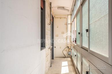 Composto da: Ingresso su saletta, salotto, cucina con veranda e lavanderia, 2 camere da letto, ripostiglio, servizio con doccia finestrato, balcone su prospetto.