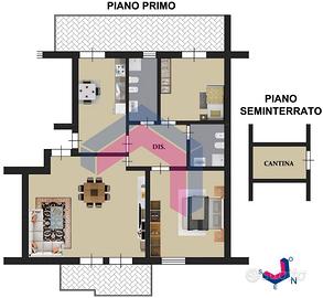 La casa è composta da: Doppio ingresso, salone doppio, cucina abitabile, 2 camere da letto, 2 servizi, 2 balconi.