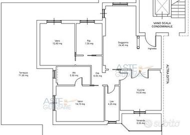 Composizione Interna: Soggiorno, Cucina Abitabile, Bagno, 2 Camere, Lavanderia, Cameretta. All' esterno terrazzo di 72Mq.