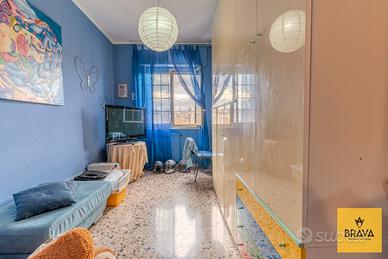 Oltre alla veranda, la soluzione vanta altri due balconi, che regalano una vista aperta e suggestiva, valorizzata dalla doppia esposizione e dall'altezza del piano, fattori che assicurano luce e aria in ogni momento della giornata.