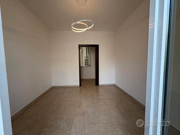 L'abitazione è composta da ingresso, ampio salone doppio, cucinotto, due camere da letto, due bagni (uno con doccia e uno di servizio) e quattro balconi. Dal salone una scala interna conduce a una camera aggiuntiva con altezza di 2,70 m, ideale come studio o terza camera.