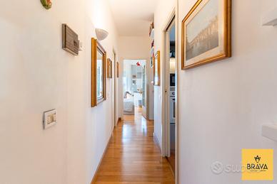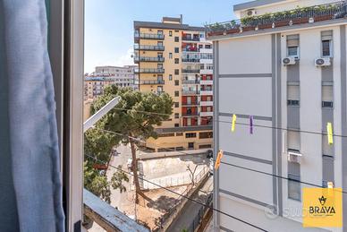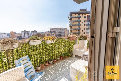 In Via Enrico Serretta, in un contesto tranquillo ma perfettamente collegato ai principali servizi della zona, si propone in vendita un grazioso appartamento di circa 95 mq, situato al quinto piano di uno stabile dotato di ascensore. La posizione elevata, unita alla tripla esposizione, regala agli ambienti una luminosità naturale che accompagna la casa durante tutto l'arco della giornata, rendendola accogliente e ariosa. L'ingresso si apre su un ampio salone pari a un vano e mezzo, uno spazio elegante e ben distribuito, ideale sia per momenti di relax che per accogliere ospiti. La cucina, abitabile e funzionale, è arricchita da una comoda veranda che ne amplia la vivibilità. La zona notte è composta da due spaziose camere matrimoniali, pensate per garantire comfort e privacy, mentre i due servizi, entrambi con doccia, sono rifiniti con gusto moderno. Completa la proprietà un pratico ripostiglio, sempre utile per l'organizzazione della casa. L'immobile si presenta totalmente ristrutturato e curato in ogni dettaglio, con finiture eleganti e materiali di qualità: gli infissi in alluminio con vetrocamera assicurano isolamento termico e acustico, il riscaldamento autonomo e le pompe di calore garantiscono un clima ideale in ogni stagione, mentre la porta blindata offre sicurezza. La pavimentazione alterna parquet e gres, creando un piacevole equilibrio tra calore e praticità. A valorizzare ulteriormente l'appartamento vi sono due balconi, perfetti per godere degli affacci e della luce naturale. È inoltre disponibile la possibilità di posto auto e posto moto, una comodità sempre più rara e ricercata. La zona è particolarmente apprezzata per la sua vivibilità: a pochi passi da Via San Lorenzo e Via dei Quartieri, offre negozi, servizi, scuole e collegamenti, rendendo questa soluzione ideale sia per famiglie che per chi desidera abitare in un contesto ben servito senza rinunciare alla tranquillità.