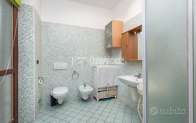 Bagno principale con vasca ed accesso all'ultimo balcone della soluzione.