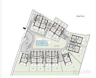 Una grande piscina e un'area verde comune completano l'aspetto accogliente del complesso.