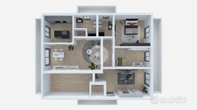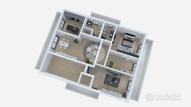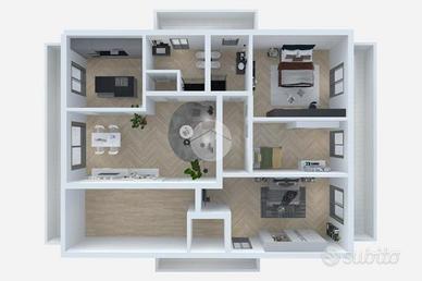 La tipologia di questo appartamento è rara sul mercato: l'ampia metratura rende possibile di creare una cucina abitabile separata dalla zona soggiorno, o un open space ben strutturato e luminoso, di avere tre comode camere da letto e doppi servizi entrambi finestrati e completi di tutti i sanitari.
