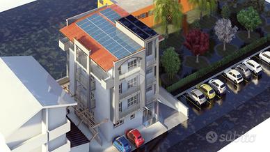 Ogni appartamento sarà dotato di impianto fotovoltaico personale con tanto di batterie di accumulo, oltre ad avere un impianto fotovoltaico dedicato a tutte le parti condominiali; saranno installate pompe di calore e si avrà la possibilità di optare per il riscaldamento a pavimento.