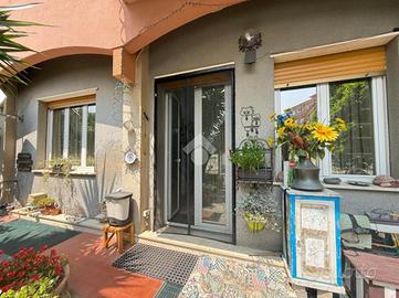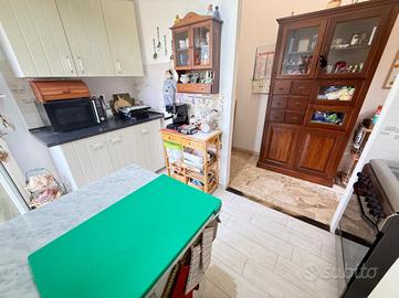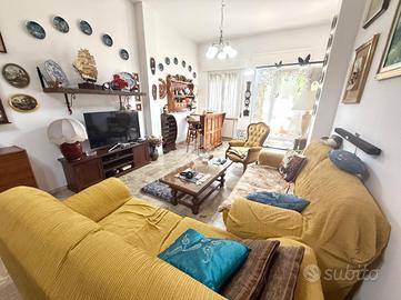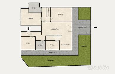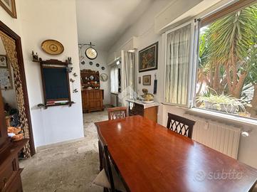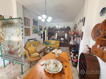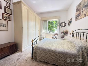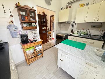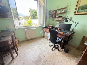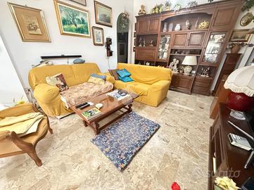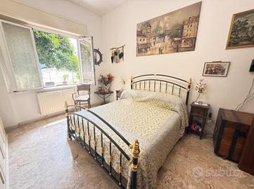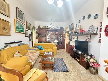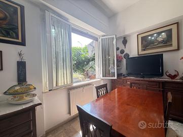 L'alloggio internamente è composto da ingresso in doppio soggiorno, cucina con uscita sul cortile, due camere da letto matrimoniali, 1 camera singola adibita a studio, due bagni finestrati.