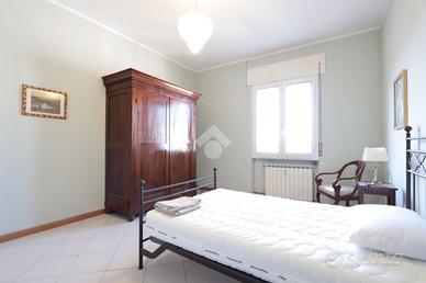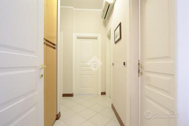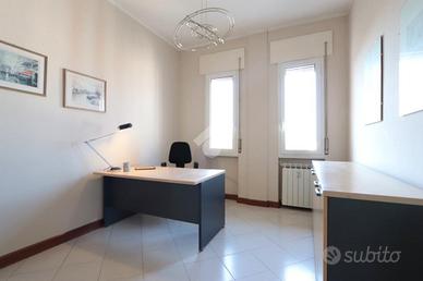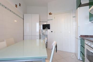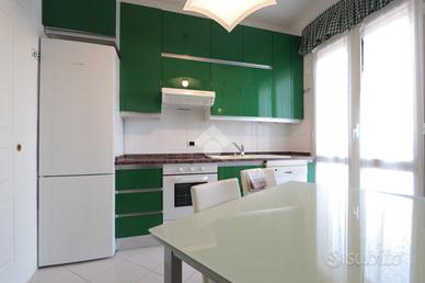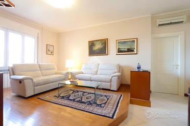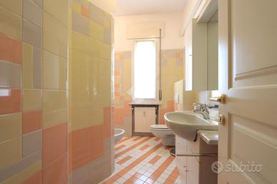 In zona tranquilla e ben servita, proponiamo in vendita 5 locali con box auto. L'immobile, tenuto con grande cura, offre spazi ben distribuiti e funzionali: luminoso soggiorno, cucina abitabile, tre camere da letto, due bagni, uno completo di doccia uno dotato solo di wc e ampio ripostiglio. Gli infissi sono in alluminio con doppio vetro. La proprietà è completata da cantina. Libero subito.