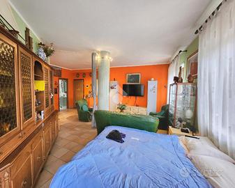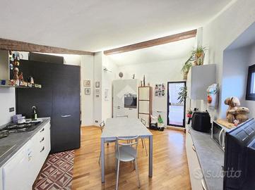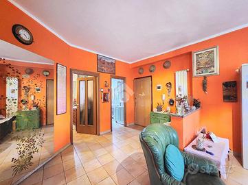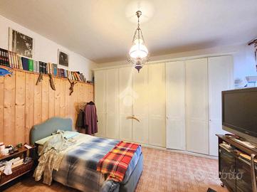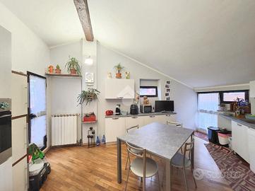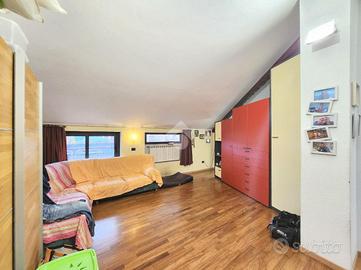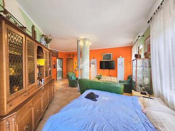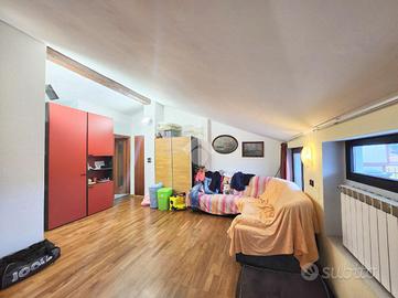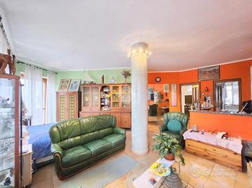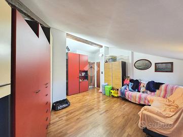 Il piano superiore è stato completamente ristrutturato e, l'eliminazione della scala di collegamento tra i due livelli ha reso gli stessi indipendenti tra loro in quanto ognuno possiede il proprio ingresso. Sullo stesso livello, il riscaldamento è stato reso autonomo attraverso l'inserimento della caldaia a metano. L'ingresso avviene sul soggiorno living, caratterizzato dalla sua pavimentazione in legno che copre anche tutto l'appartamento al di fuori del bagno. Adiacente ad esso, è presente la grande e luminosa cucina abitabile, dalla quale è possibile accedere al balcone ed al grande terrazzo. Quest'ultimo percorre tre lati del fabbricato e regala uno splendido panorama sul monte Musiné. A completare il piano sono la camera da letto ed il bagno finestrato all'interno del quale è stata posata la doccia. Il piano inferiore possiede l'ingresso living sul salone doppio che raggiunge questa dimensione grazie all'unione di due camere. Sicuramente particolare nella sua conformazione, è reso fortemente luminoso grazie alle 3 aperture che ospita al suo interno e, che affacciano sul tutte sul grande terrazzo. Anche questo percorre 3 lati del fabbricato ed è esattamente sotto a quello del piano attico. Il panorama offerto è identico a quello del piano superiore. Percorrendo lo spazioso ingresso living, è possibile raggiungere la cucina abitabile. Generosa nelle dimensioni, questa possiede un altro accesso allo stesso terrazzo. Adiacente alla cucina è presente una camera da letto che ospita il balcone privato. Anche il bagno di questo piano è finestrato ed ospita la doccia in cristallo. L'appartamento è inserito in un condominio di tre piani servito dall'ascensore e, occupa il terzo piano ed il piano attico. La tripla esposizione lo rende particolarmente luminoso e, la sua centralissima posizione consente di raggiungere ogni servizio a piedi. Ubicato nella piazza del mercato, anche mezzi pubblici e stazione ferroviaria sono comodissimi. A completare la proprietà è la canti...