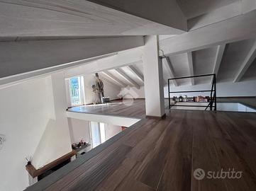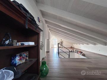 L'interno si apre su un luminoso e ampio soggiorno open-space dotato di camino,tramite disimpegno si ha l'accesso alla camera da letto matrimoniale con cabina armadio, ad ampio bagno finestrato e un locale lavanderia. Infine tramite scala interna si raggiunge il soppalco mansardato e finestrato, nel quale si può ricavare una seconda camera.