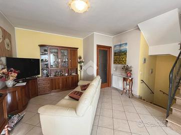 Il piano seminterrato ospita una spaziosa taverna, uno spazio versatile e ben organizzato con cucina attrezzata, camino e stufa a pellet collegata ai termosifoni. L'impianto di riscaldamento offre anche la possibilità di utilizzare la caldaia, garantendo flessibilità ed efficienza in ogni stagione. Su questo livello si trovano inoltre un bagno completo di vasca e doccia e una comoda lavanderia. La taverna è accessibile sia dall'interno della casa, tramite scala interna, sia dall'esterno, con accesso diretto dal garage, che completa la proprietà.