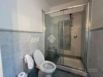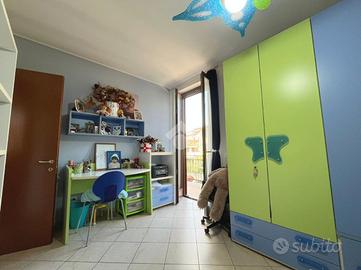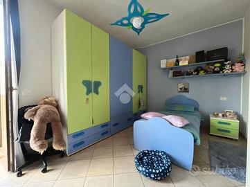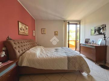 La zona notte, situata al piano superiore, comprende due ampie camere matrimoniali entrambe servite da balcone, di cui una con cabina armadio, una cameretta singola, un ulteriore ripostiglio e un secondo bagno finestrato con doccia.