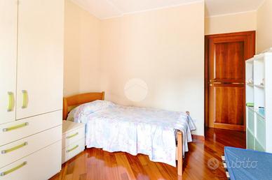Tramite un disimpegno accediamo alla zona notte che si compone da camera matrimonale, cameretta con accesso sul balcone e bagno finestrato con box doccia.