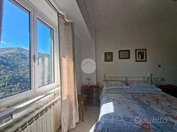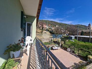 Avegno - località di Testana, ampio appartamento di 133 mq in bi-familiari senza spese condominiali. L'immobile si presenta in buone condizioni ed è così composto: ampio ingresso con camino, cucina abitabile con uscita sul balcone, tre camere da letto, bagno finestrato con doccia e dispensa. Completa la proprietà un ampio box carrabile e un giardino in parte piastrellato.