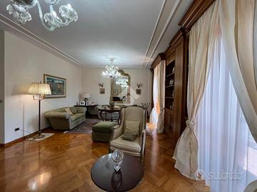 Nei pressi dello stadio Partenio Lombardi, in via Guerriero, proponiamo un appartamento signorile in vendita. L'immobile si trova al piano medio di un edificio, costruito nel 1991, ed offre una generosa superficie di 161 mq interni. L'ingresso accoglie in un ampio salone doppio, caratterizzato da un raffinato parquet a cassettoni in rovere, ideale per momenti di relax e convivialità. La cucina in muratura, dotata di una pratica dispensa, si presta perfettamente per chi ama cucinare. Adiacente, la sala da pranzo con termocamino, coibentato con l'utilizzo di lana di roccia, offre un'atmosfera calda ed accogliente. Un corridoio, con armadi su misura in acero e parquet in doussiè Africa, conduce alla zona notte, composta da tre spaziose camere da letto. Completano la proprietà due bagni, progettati per offrire funzionalità e stile. L'appartamento è arricchito da due balconate terrazzate, perfette per godere di momenti di relax all'aperto. L'immobile si distingue per la sua eleganza e funzionalità: il salone e la sala da pranzo sono arricchite da pareti attrezzate su misura in noce nazionale massello, che conferiscono raffinatezza agli ambienti. Gli infissi in legno con vetrocamera garantiscono un ottimo isolamento termico e acustico, mentre le porte in noce massello aggiungono un tocco di classe. La sicurezza è assicurata da un impianto di allarme a barriera, che offre tranquillità e protezione. E' possibile acquistare separatamente un comodo box auto. E' possibile fissare appuntamenti per le visite il sabato mattina, previo avviso telefonico, almeno un paio di giorni prima.