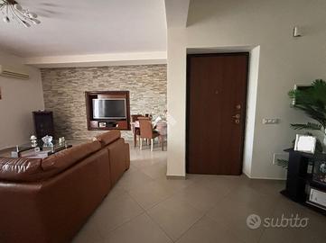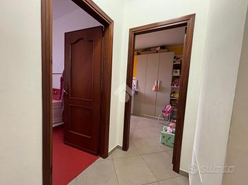 L'ingresso avviene tramite porta blindata direttamente sull'ampio soggiorno, con affaccio sul prospetto principale. Adiacente al soggiorno si trova la cucina abitabile, anch'essa con apertura su balcone.