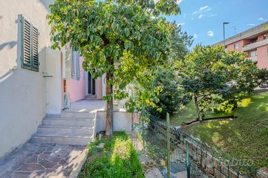 Al piano terra l'ampia zona giorno composta dall'ingresso che suddivide gli ambienti: il soggiorno luminoso, un primo bagno finestrato e la cucina-tinello dalla quale si accede al resede di 50mq.