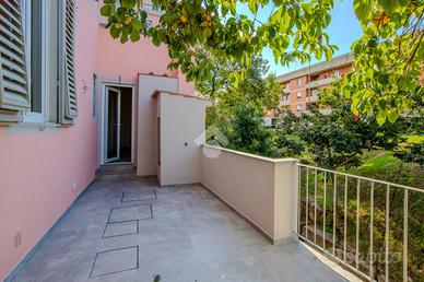 La zona notte è composta da due camere matrimoniali entrambe luminose: una è accessoriata di una stanza da adibire a cabina armadio o studio, una piccola zona toilette (con predispozioni fatte per diventare bagno) ed un delizioso terrazzo abitabile, l'altra camera matrimoniale si trova accanto al bagno finestrato.