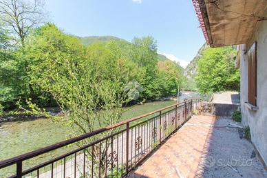 Al piano terra abbiamo l'ampia zona giorno con fuoco in muratura e terrazzo che affaccia sula fiume Chiese, oltre a cucinotto separato e stanza fruibile come studio dove, nell'ottica di una ristrutturazione, è opinabile creare una scala interna che colleghi direttamente i due piani della soluzione abitativa.