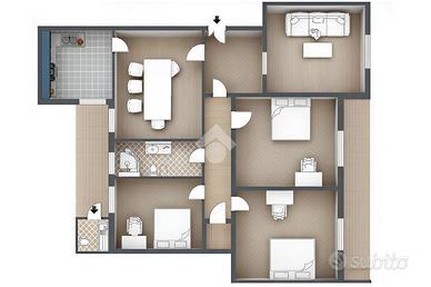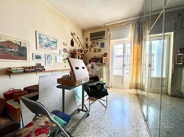 Il soggiorno gode di un affaccio esterno su Via Quarto con una finestra alla romana, mentre le altre stanze hanno accesso diretto a uno dei due balconi, offrendo comfort e luminosità.