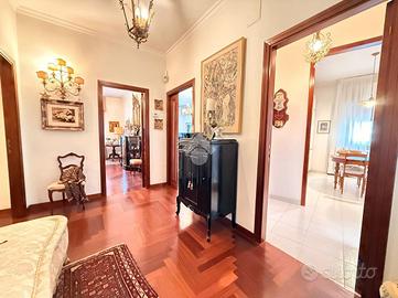 L'immobile, libero e in ottimo stato, è posto al quarto piano di uno stabile elegante, ben abitato e servito da ascensore. La soluzione si distingue per la generosa metratura e l'ottima distribuzione degli spazi interni, ed è composta da un salone doppio, cucina abitabile, quattro camere da letto, due bagni e ripostiglio. La tripla esposizione conferisce grande luminosità agli ambienti durante tutto l'arco della giornata, valorizzata dalla presenza di tre balconi.