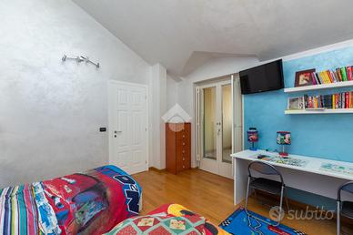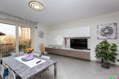 In zona Fornaci, precisamente in Via Montello, zona tranquilla ma allo stesso tempo comoda ai principali servizi quali scuole, negozi, circolo del tennis e a pochi metri dal centro commerciale "Le Fornaci" e dalle fermate dei pullman che portano a Torino e ad Orbassano. In stabile signorile del 2010, appartamento al primo piano dove è presente un piano mansardato. Tramite portoncino blindato si ha l'accesso all'ampia zona giorno living dotata di cucina a vista con porta finestra fuori misura in legno color bianco dotato di gelosie e di zanzariere con affaccio sul terrazzo vivibile con luce esterna con vista su Via Montello. Il disimpegno divide la zona giorno dalla zona notte dotato di ripostiglio dove troviamo un'ampia camera da letto ben squadrata dotata anch'essa di porta finestra con affaccio sul terrazzo ed il bagno squadrato dotata di vasca e di finestra. Nella zona giorno è presente un elegante scala interna in acciaio che porta al piano mansardato dove sono presenti due camere da letto, di cui una dotata di velux e una di porta finestra con affaccio sul terrazzo coperto. In mansarda è presente il secondo bagno dotato di doccia e di velux. Al piano primo al pavimento è omogeneo in tutte le stanze ad eccezione del bagno con piastrelle dotate in diagonale mentre al piano mansardato la pavimentazione è in parquet ad eccezione del bagno. L'appartamento è dotato di antifurto, videocitofono e citofono in entrambi i piani, zanzariere e gelosie in tutta casa. Il riscaldamento è autonomo a pavimento ed è stata sostituita la caldaia nel 2026. Al piano interrato è presente un box auto doppio di circa 37mq.