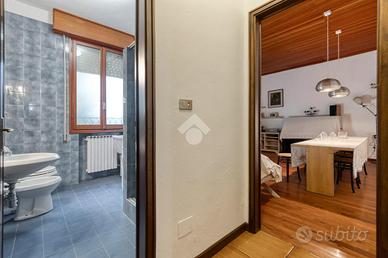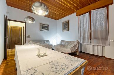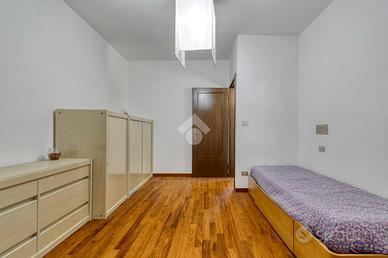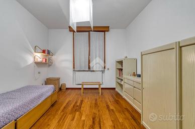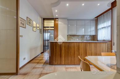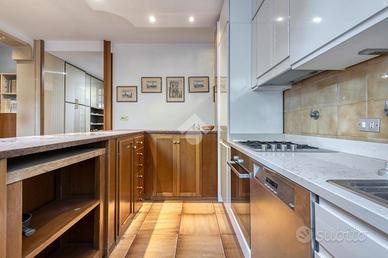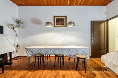 L'immobile si apre su un ingresso che conduce al soggiorno con cucina a vista. La zona notte, impreziosita da pavimenti in parquet, ospita quattro camere da letto ben distribuite e due bagni finestrati. Completano la proprietà due cantine e una soffitta. L'appartamento rappresenta un'ottima occasione di investimento grazie alla vendita in nuda proprietà, con la possibilità di acquisire un bene di valore a condizioni vantaggiose. età usufruttuari 88 e 87 anni.