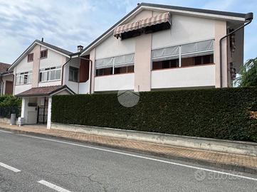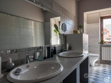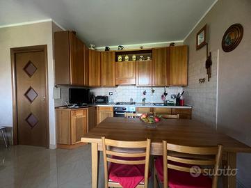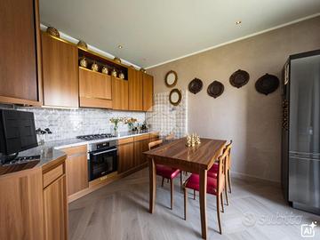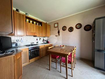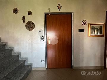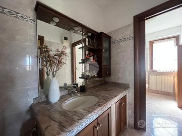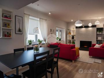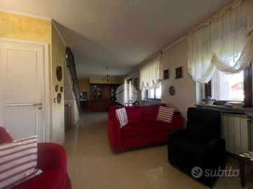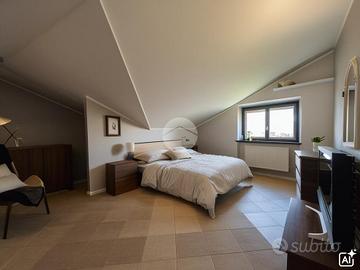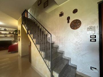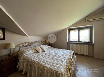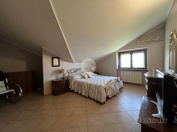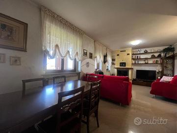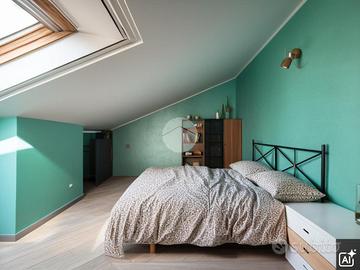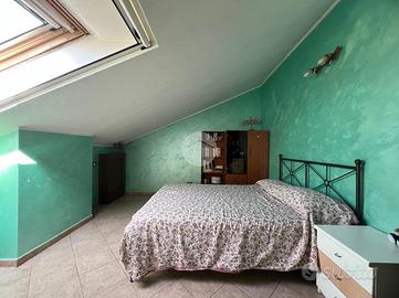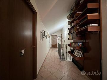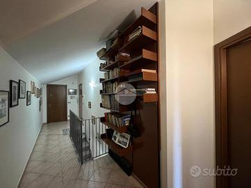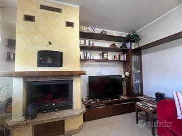 DESCRIZIONE E PARTICOLARITA': Ingresso living che si fonde armoniosamente in un ampio soggiorno di generosa metratura, open space impreziosito dalla presenza di un camino a legna in muratura utilizzabile anche a pellet. La cucina abitabile e funzionale garantisce una netta divisione tra gli ambienti. Dall'intera zona giorno si accede al terrazzo, accessoriato da tende veranda e parasole. Un bagno di generose dimensioni si trova al piano. La comoda scala interna in muratura conduce al piano superiore dove un ampio corridoio disimpegna e distribuisce l'ambiente notte, composto da tre camere da letto e un ampio bagno. Tutti gli ambienti hanno velux e abbaini che garantiscono luce e aria naturale.Il riscaldamento è autonomo. Incluso nel prezzo cantina e box auto doppio di 40 mq.
