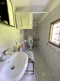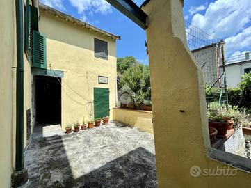 La casa offre opzioni diverse per la distribuzione dello spazio; potrebbe diventare un unico terratetto di 5 vani con doppi servizi, oppure si potrebbe mantere l'appartamento al primo piano come è adesso e ricavarne un secondo di due stanza al piano terreno.