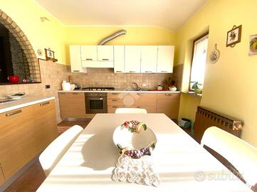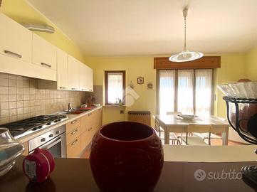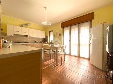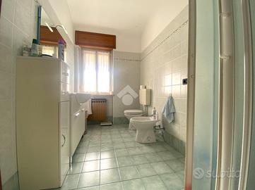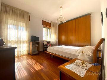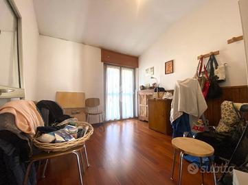 Ci accoglie l'ampio ingresso che funge anche da disimpegno. La cucina è abitabile oltre che luminosa, grazie alla finestra e porta finestra a tre ante (con tapparella elettrificata), con uscita sull'ampio balcone esposto a sud. Questo ambiente è ingentilito dall'apertura di un arco, che oltre ad aprire la vista sul soggiorno, ne permette un illuminazione naturale. Il soggiorno anch'esso con balcone, ha sia la finestra che la porta finestra, ospita due poltrone per la zona conversazione ed il tavolo da pranzo. Il bagno ristrutturato, è finestrato ed ha la doccia. La zona notte (con pavimento in parquet) è composta dalla camera matrimoniale esposta a sud, dalla camera singola e dallo studio/cameretta. Alcuni infissi sono stati sostituiti (sono in pvc con doppio vetro), cosi come il pavimento della cucina. Il riscaldamento è autonomo a gas metano.