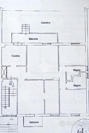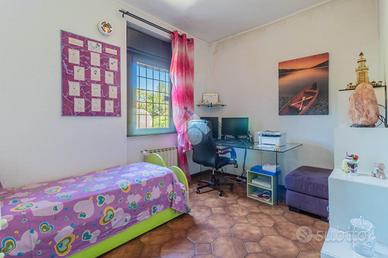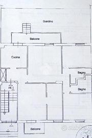 L'ingresso si apre su un ingresso che conduce al soggiorno e cucina con uscita sul giardino privato. La zona notte comprende una camera matrimoniale con cabina armadio e balcone, due camerette e due bagni, con spazi pratici e funzionali pensati per la vita quotidiana.