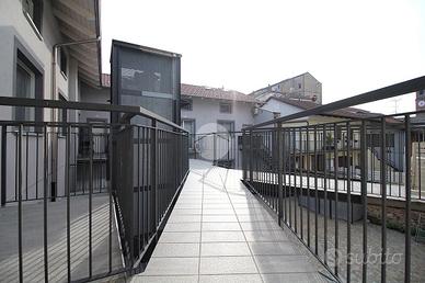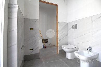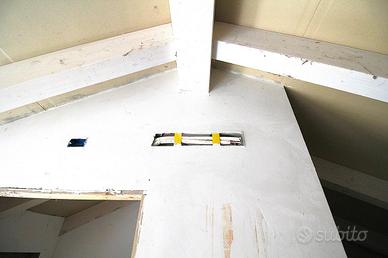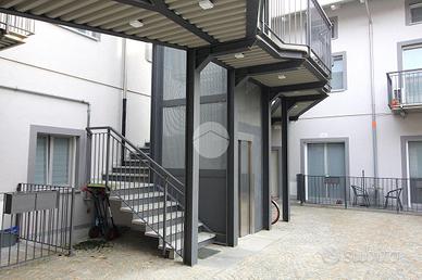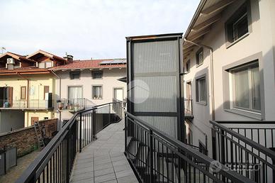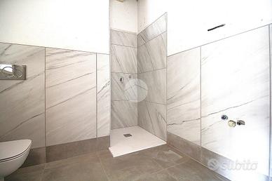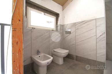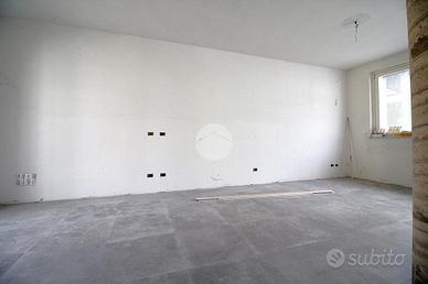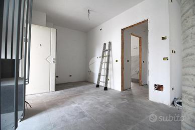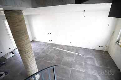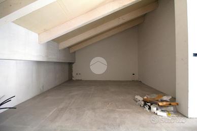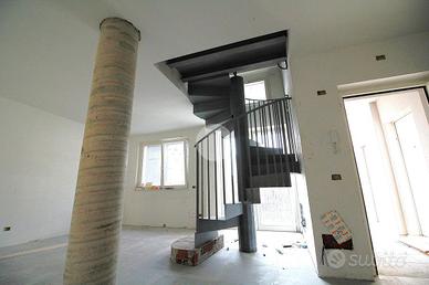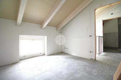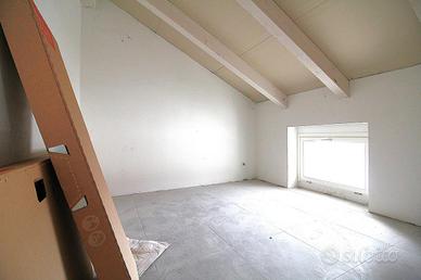 In zona centrale, comoda a tutti i negozi e servizi, alloggio in contesto di nuova costruzione con finiture moderne e ricercate. Il portoncino d'ingresso blindato apre sulla zona giorno unica sviluppata sull'intero primo piano. L'ambiente unico permette di creare una zona dedicata al soggiorno con la relativa parete attrezzata, mentre il resto della stanza può essere utilizzato per inserire la parete cottura. La stanza è resa luminosa dalla portafinestra con balcone alla francese e da altre due aperture che affacciano sul balcone. Vista l'ampia dimensione della zona giorno è possibile ricavare una cucina abitabile,separando la sala. Il bagno è rivestito con piastrelle in gres porcellanato effetto marmo, ed è dotato di sanitari moderni filo muro e ampia doccia. Nell'antibagno è presente l'impianto di carico per la lavatrice. La scala interna realizzata con struttura elicoidale conduce al piano mansardato caratterizzato dal soffitto in legno a vista di colore bianco. La camera matrimoniale è di metratura generosa e consente di essere facilmente arredata a piacimento. Vista l'ampia dimensione della stanza è possibile suddividere lo spazio in due camere da letto, realizzando quindi una zona notte di complessive tre camere. La seconda camera da letto è ben illuminata, mentre il disimpegno conduce al bagno del piano, luminoso e dotato di tutti i sanitari. I lucernari del piano saranno installati in base al posizionamento voluto dall'acquirente. Completa l'appartamento una comoda cantina al piano terreno. L'appartamento è dotato di impianto elettrico semidomotico Bticino serie now, che consente di implementare il controllo da remoto di luci e prese elettriche. Anche il sistema di riscaldamento semiautonomo a pavimento è regolabile con un termostato touch screen. Gli infissi sono realizzati in legno e dotati di vetrocamere da 28 mm. di spessore, in grado di garantire un ottimale isolamento termico e acustico. E' prevista inoltre la predisposizione del sistem
