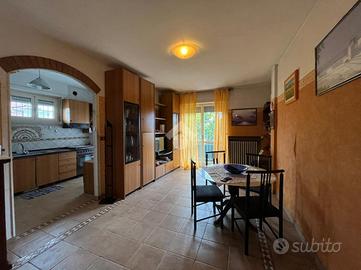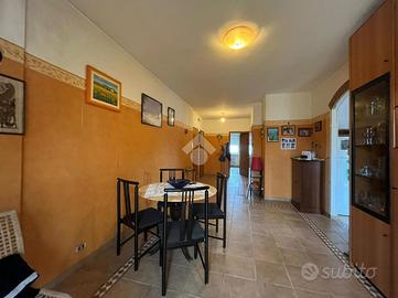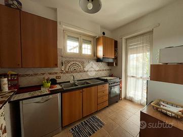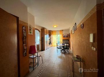 L'appartamento, privo di ascensore, si sviluppa su due livelli. Al piano principale troviamo l'ingresso su un ampio soggiorno con cucinino, dal quale si accede a un terrazzino vivibile. La zona notte è composta da due camere da letto matrimoniali di generose dimensioni e un bagno finestrato completo di doccia e vasca.