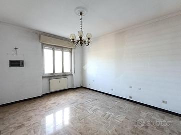 BUSALLA - Via Gino Suardi Siamo a due passi dal supermercato Basko, al primo piano di una palazzina in ottimo stato di manutenzione per quanto riguarda le sue parti comuni, in quanto oggetto di recente ristrutturazione, tramite eco-bonus, di tutta la facciata, i terrazzini ed il tetto. La palazzina stessa inoltre è dotata di ascensore. L'appartamento è un ampio 7 vani così disposto al suo interno: Un ampio ingresso, eventualmente arredabile ed un successivo corridoio provvisto di spazio armadiabile, ci conducono ai vari ambienti della casa. In primo luogo troviamo la zona giorno composta da una cucina abitabile e da un ampio salone; da ambo gli ambienti è possibile accedere, tramite due porte-finestra, al terrazzo di proprietà. Lo spazio esterno consente il posizionamento di un tavolo da 4/6 persone e la possibilità di mangiate o colazioni nei periodi più caldi, oppure come zona relax o spazio adibito ad animali domestici anche di grande dimensioni. Il corridoio ci conduce in secondo luogo alla zona notte composta da due grandi camere matrimoniali e da una cameretta singola; in una delle camere matrimoniali inoltre è presente una piccola cassaforte a muro. Adiacente all'ultima camera troviamo l'ampio bagno dotato di finestra, di vasca e di box doccia. I pavimenti sono in graniglia alla genovese, tipo marmo lucidabili a piombo mentre gli infissi interni sono in alluminio. Il riscaldamento è centralizzato, sono presenti i contabilizzatori di calore in tutti i caloriferi ed i costi di amministrazione risultano più contenuti rispetto agli anni passati in quanto già presente nella palazzina il teleriscaldamento. Da ri-ammodernare internamente con eventuale possibilità di ridistribuzione degli spazi interni, a seconda dei gusti e delle esigenze. Completa la proprietà e compreso nel prezzo, un box posto nei fondi dello stabile di circa 25 MQ, sfruttabile sia come ricovero mezzi, sia come magazzino deposito ed altresì dotato di grande saracinesca di ingresso au