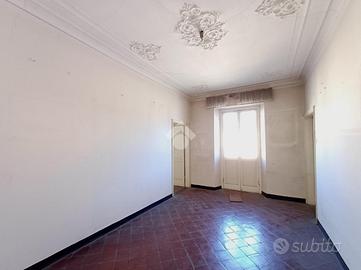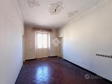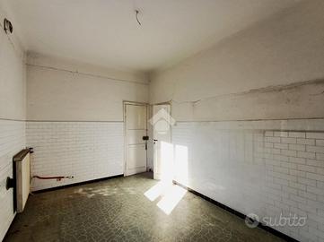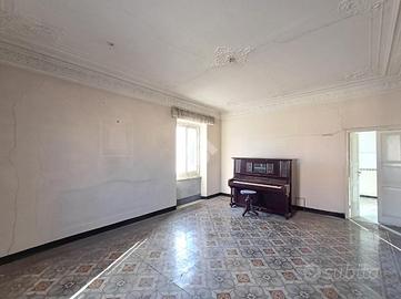 BUSALLA - Via Migliarese Siamo in pieno centro paese, a pochi passi da tutti i servizi essenziali quali negozi, scuole, uffici comunali e mezzi di trasporto pubblici, facilmente fruibili anche a piedi. L'immobile è situato al terzo piano di una piccola palazzina storica, senza spese di amministrazione alcuna e gode di ottima luminosità in tutte le ore del giorno in quanto libero su tre lati e dotato di doppia balconata. Dal vano scale condominiale esistono tre possibilità di accesso separate alla parte abitativa; una, la principale, nel grande ingresso alla genovese, la seconda e la terza, direttamente in cucina oppure in una delle camere da letto. La zona giorno è composta da un grande ingresso, eventualmente arredabile, il quale conduce a raggiera a tutti gli ambienti della casa grazie alle diverse porte con affaccio sia sulla zona giorno sia sulla zona notte. Lo stesso ingresso inoltre è dotato di porta-finestra con accesso al primo balcone, il più piccolo, rivolto verso piazza Colombo. La zona giorno è composta da una cucina abitabile e da un adiacente soggiorno doppio dotato di due finestre; dalla cucina (cosi come da una della camere) si può accedere alla seconda grande balconata. La zona notte è composta da due spaziose camere matrimoniali, una di esse comprensiva di piccolo ripostiglio. Dal pianerottolo si passa, tramite scala, al grande solaio di proprietà di pari metratura della parte abitativa e composta da 5 grandi locali mansardati, eventualmente sfruttabili come ulteriore parte abitativa. Tra la seconda camera ed il solaio è posizionato un piccolo bagnetto dotato di finestra e WC. Il riscaldamento è termo-autonomo tramite calderina a metano; tutti i pavimenti sono in tipiche piastrelle 'cementine' o graniglia alla genovese mentre sia le porte sia le finestre sono in legno. Dotato inoltre di caratteristici stucchi su tutti i soffitti. L'immobile risulta DA RISTRUTTURARE internamente ma la grande metratura e la conformazione planimetrica perm