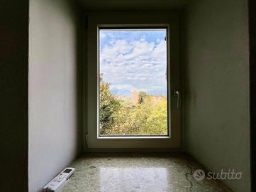 L'immobile, sviluppato su unico livello abitativo, presenta l'ingresso su luminoso soggiorno, cucina abitabile, sala da pranzo con accesso al balcone dal quale si puó godere di una piacevole vista panoramica, due camere di cui una con sfogo sul secondo balcone e bagno finestrato dotato di box doccia.
