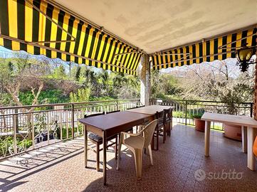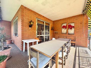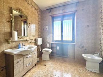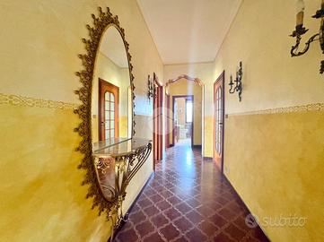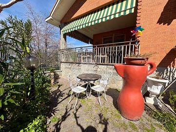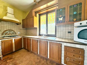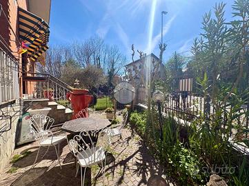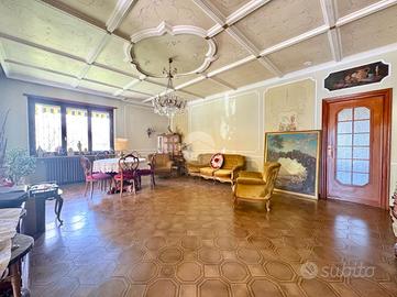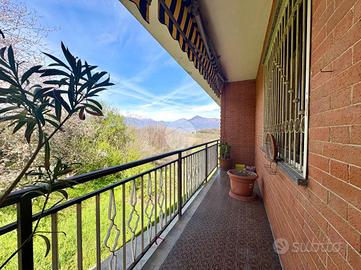 In posizione centrale e comoda ai principali servizi, appartamento di ampia metratura situato al piano rialzato e ultimo piano di una bifamiliare, caratterizzato da spazi ben distribuiti e da un grazioso giardino privato. L'immobile, sviluppato su un unico livello abitativo, presenta l'ingresso, un luminoso e ampio soggiorno con accesso al terrazzo, ideale per momenti di relax all'aperto, e la cucina, spaziosa e funzionale, dotata di camino a legna e uscita sul balcone. La zona notte è composta da tre camere matrimoniali, tutte con accesso al balcone da cui si gode una splendida vista panoramica sulle montagne, e bagno finestrato dotato di box doccia. L'immobile gode di ottima esposizione e ingresso indipendente, elementi che garantiscono privacy e luminosità durante tutta la giornata. Completano la proprietà un box auto doppio con accesso sia dall'esterno sia direttamente dall'abitazione tramite scala interna, e cantina. Soluzione ideale per famiglie o per chi desidera ampi spazi abitativi in un contesto tranquillo ma centrale.