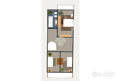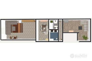 Completa la zona giorno, sita al primo livello, un bagno con vasca e una spaziosa terrazza a livello che grazie alle sue generose metrature permette di essere vivibile in qualsiasi contesto, garantendo, inoltre, una vista panoramica sulla zona circostante.