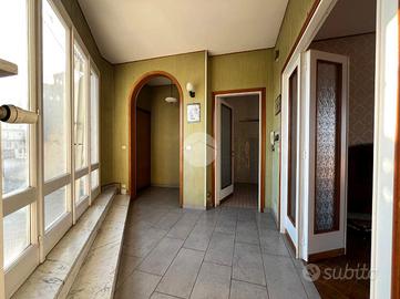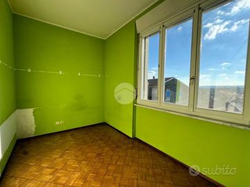 L'ingresso si affaccia su di un corridoio che disimpegna i vari locali, la cucina abitabile con un balconcino verandato, un soggiorno ampio e luminoso con accesso ad un lungo balcone dal quale si gode di una piacevole vista sulla città sottostante, completano l'appartamento una camera matrimoniale, servita dallo stesso balcone del soggiorno, una seconda camera ed il bagno con vasca.