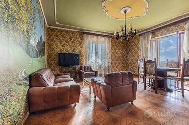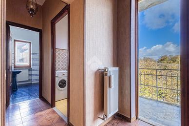 Entrando in casa al piano primo veniamo accolti dalla zona giorno caratterizzata da ampia cucina con camino e spazioso salone. Entrambi gli ambienti affacciano sul balcone perimetrale di casa, che consente una veduta panoramica che abbraccia il verde circostante ed il paesaggio che si profila all'orizzonte.