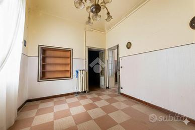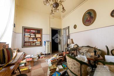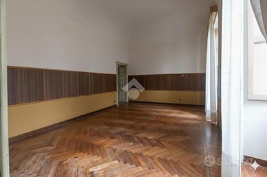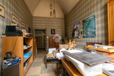 Sia dall'ultimo locale che dall'ingresso abbiamo due porte che conducono allo spazioso salone caratterizzato da una bella volta a botte con altezza di circa 4 metri, oltre che due ampie finestre che si aprono su via Cavour di fronte all'ex chiesa di Santa Croce. Da questo vano abbiamo accesso alla sala da pranzo con cucinino, sempre con affaccio su via Cavour, il cui ambiente ha un accesso diretto e indipendente sul pianerottolo condominiale.