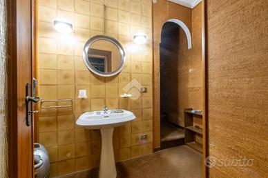 L'ingresso alla zona notte conduce a sinistra alla stanza del bagno dotata di doccia, con tre aperture sul cortile interno del condominio. Dopo questo vano abbiamo altre due di diverse dimensioni, la prima utilizzata come lavanderia e la seconda come ripostiglio, al momento collegata all'appartamento dal balcone.